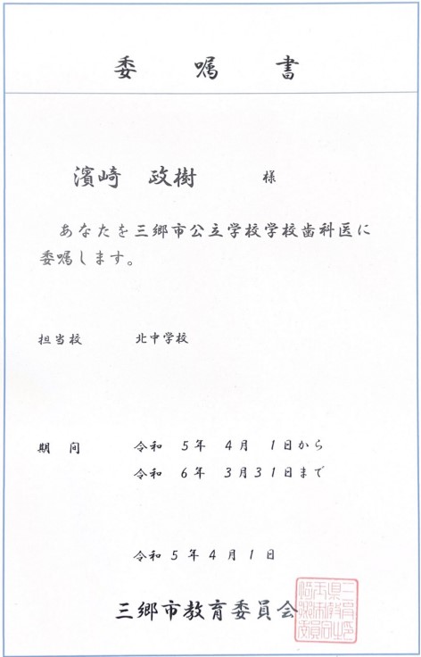 | 平成18年 | 和田歯科医院 退職 はまさき歯科クリニック 開設 |